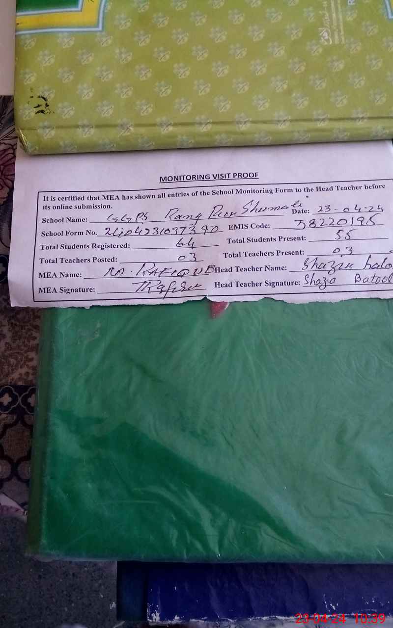 | EMIS Code: 38220195 | Name of School: GGPS RANG PUR SHUMALI | |||