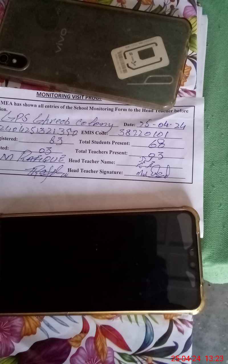 | EMIS Code: 38220101 | Name of School: GPS GHEREEB COLONY, ADHI KOT | |||