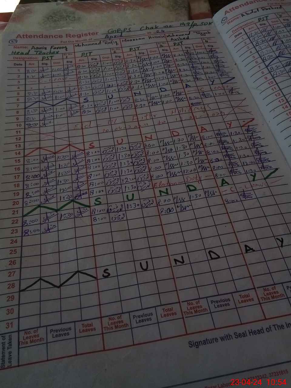 | Name: AA**** FA**** Designation: (School Headmaster's/Headmistress's) PST Phone/Cell Number: 03**** |