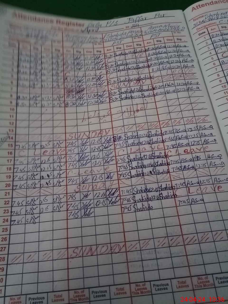 | CNIC | Full Name | Designation | R/C | Absence During Last Calender Month |