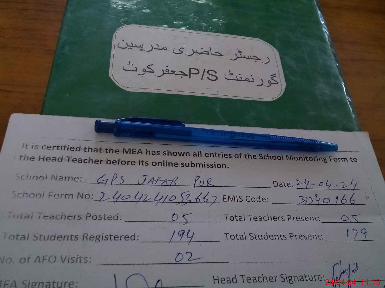 | EMIS Code: 31340166 | Name of School: GPS JAFAR KOT | |||