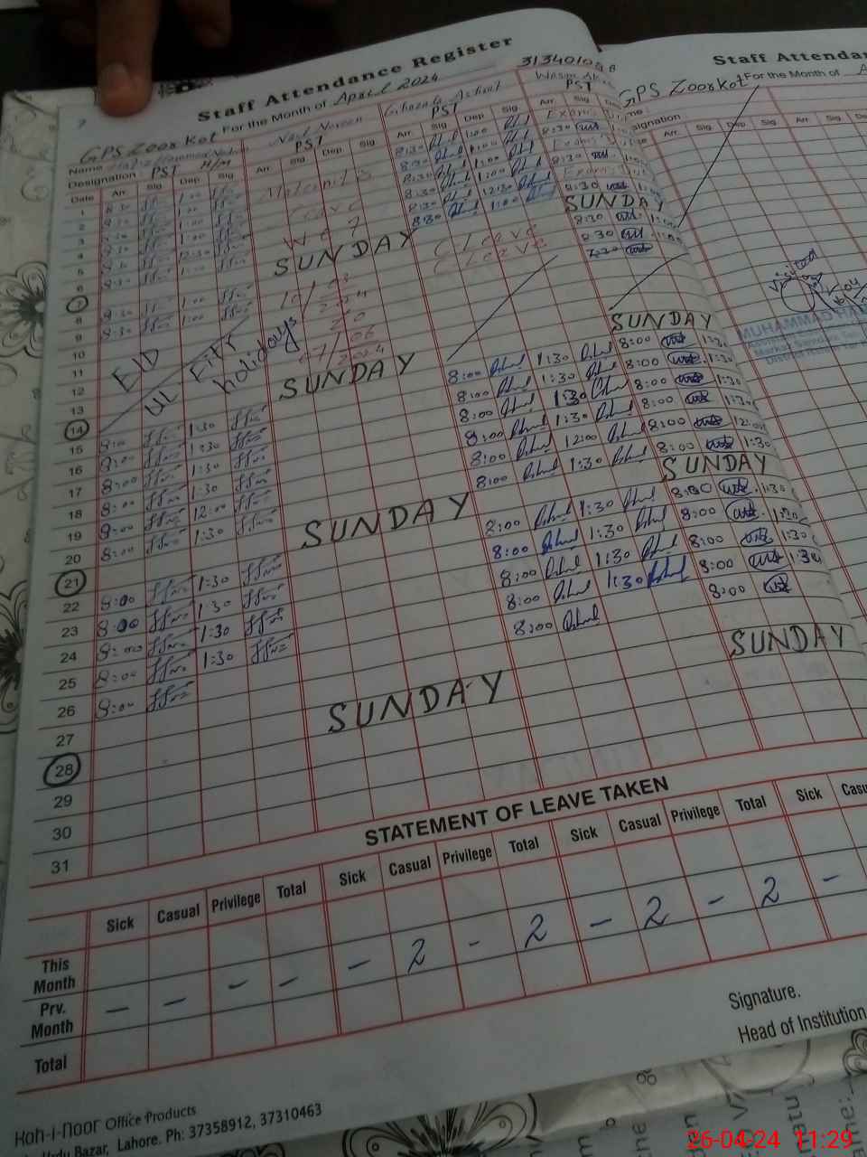 | 31**** | Na**** No**** | PST | Regular | 22 | 0 | 0 | 22 | 0 | 0 | 0 | 0 | 0 | Maternity |