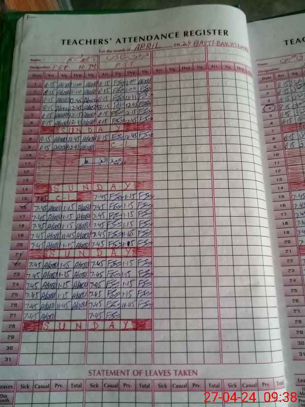 | Name: AB**** NA**** Designation: (School Headmaster's/Headmistress's) PST Phone/Cell Number: 03**** |