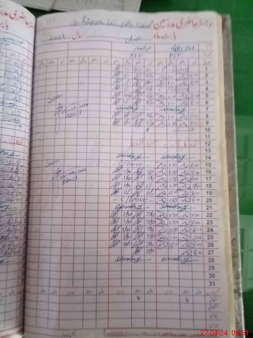 | CNIC | Full Name | Designation | R/C | Absence During Last Calender Month |