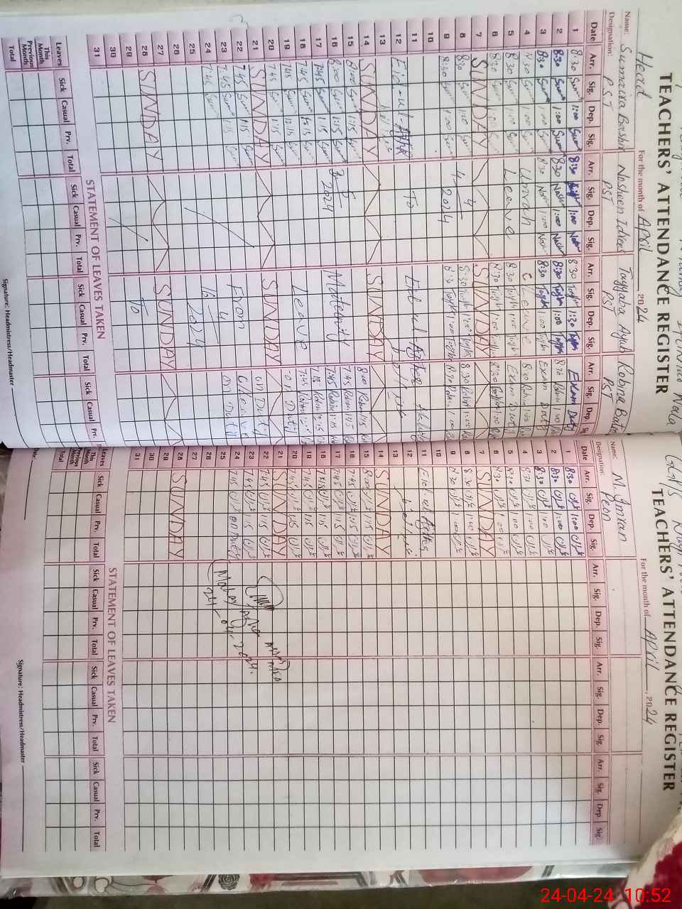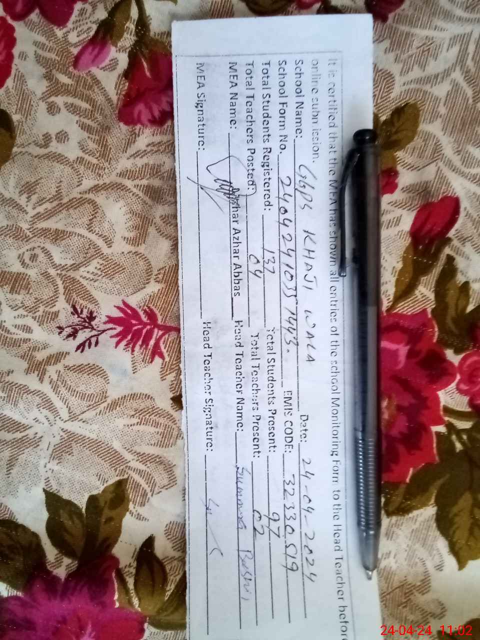 | Name: SU**** BA**** Designation: (School Headmaster's/Headmistress's) PST Phone/Cell Number: 03**** |
