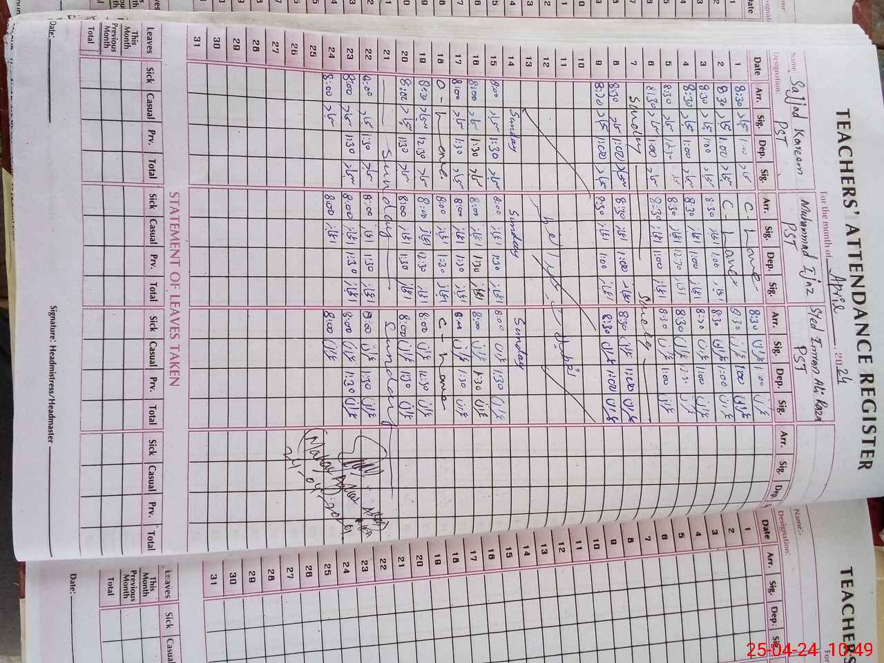 | Name: MU**** QA**** Designation: (School Headmaster's/Headmistress's) PST/PTC/JV Phone/Cell Number: 03**** |