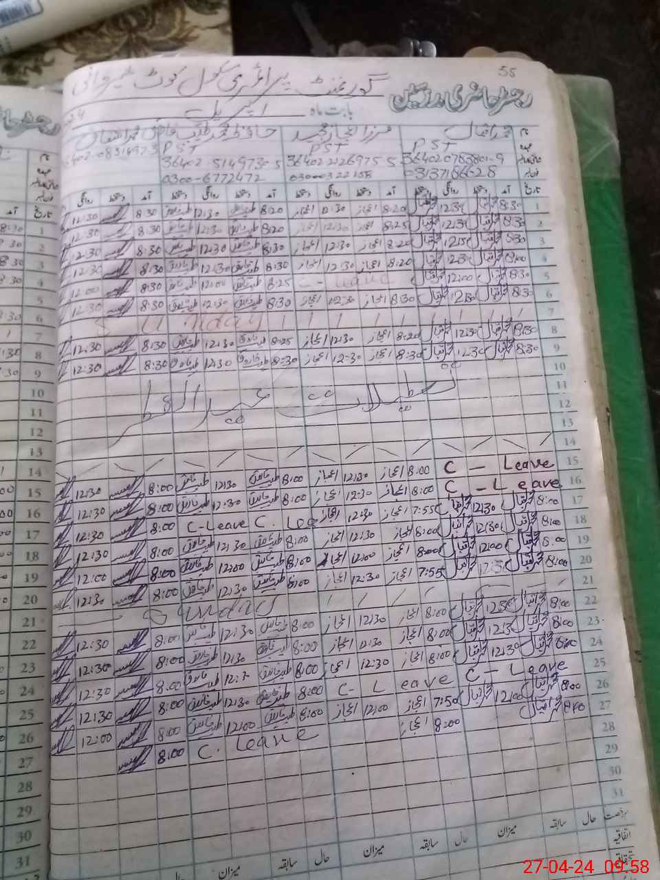 | CNIC | Full Name | Designation | R/C | Absence During Last Calender Month |