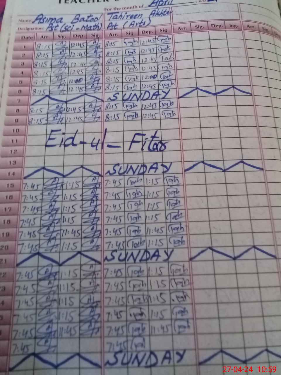 | Name: AS**** BA**** Designation: (School Headmaster's/Headmistress's) PST SC Phone/Cell Number: 03**** |