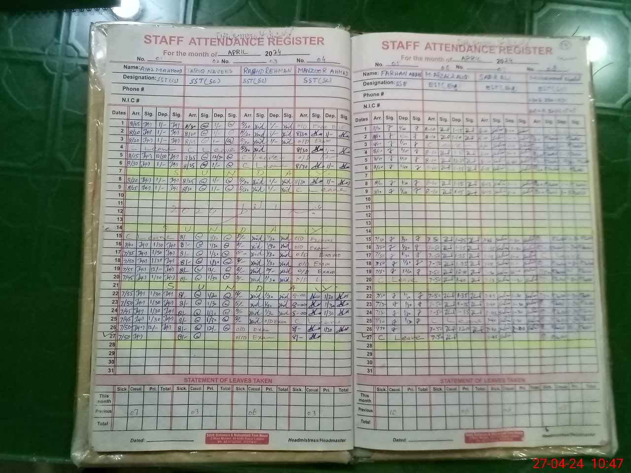 | 36**** | Ra**** Re**** | SST | Regular | 0 | 0 | 0 | 0 | 0 | 0 | 0 | 0 | 0 | Exam Duty |