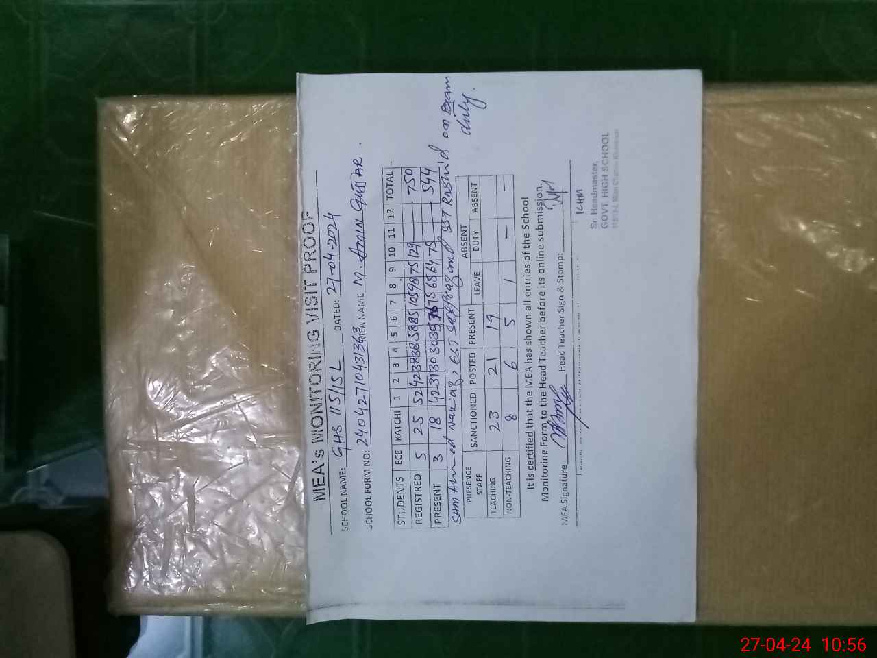 | Attendance Register | Head Teacher | MEA with School | Visit Proof |