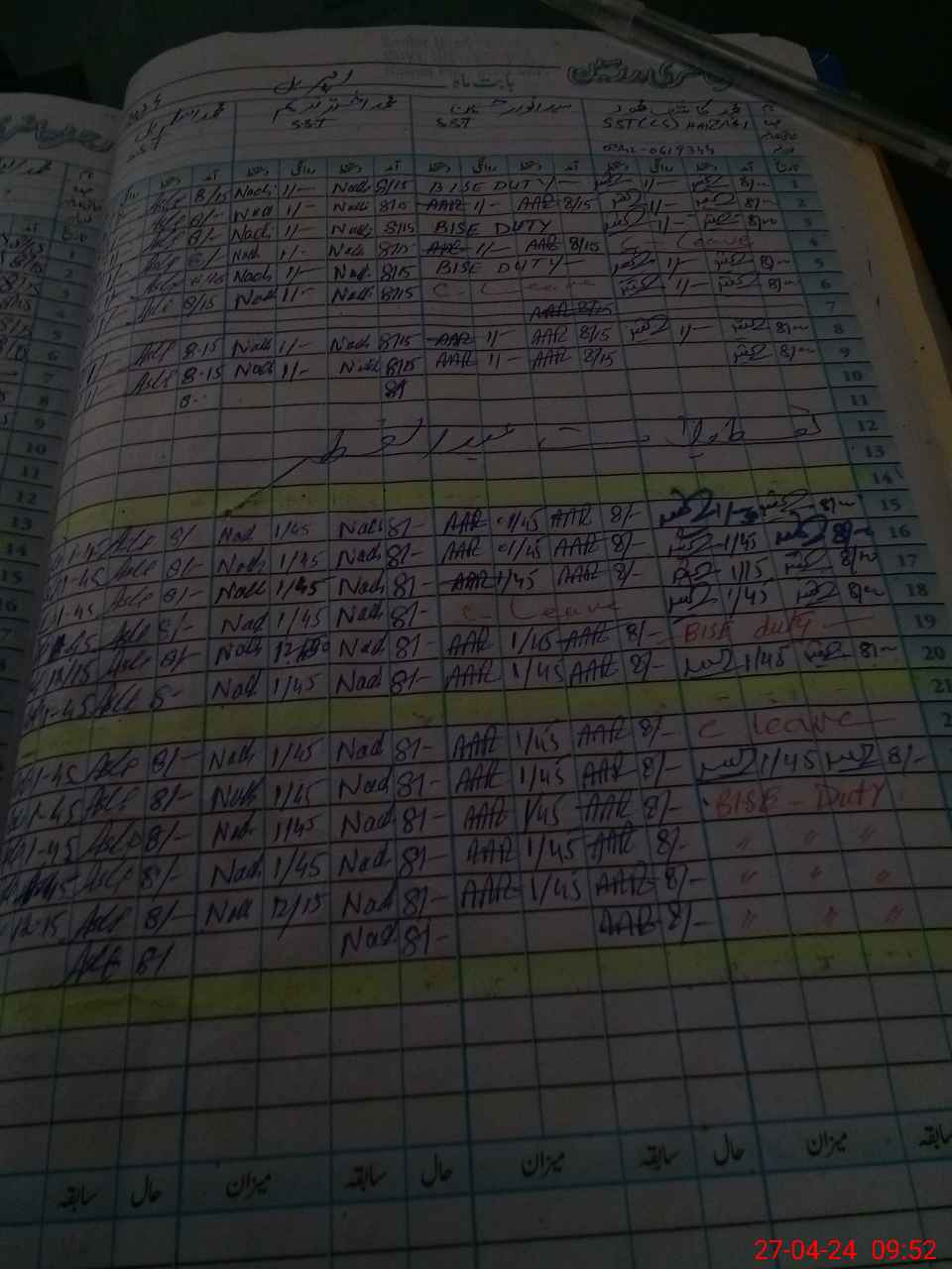 | 35**** | Mu**** Ka**** Ma**** | SST | Regular | 0 | 0 | 0 | 0 | 0 | 0 | 0 | 0 | 0 | Exam Duty |