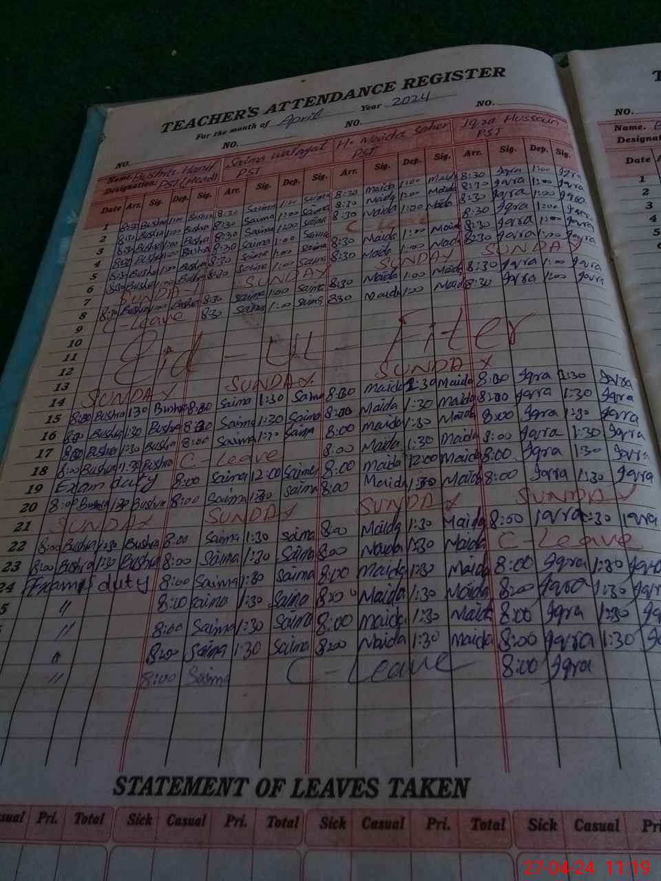 | 35**** | Bu**** Ha**** | PST | Regular | 0 | 0 | 0 | 0 | 0 | 0 | 0 | 0 | 0 | Exam Duty |