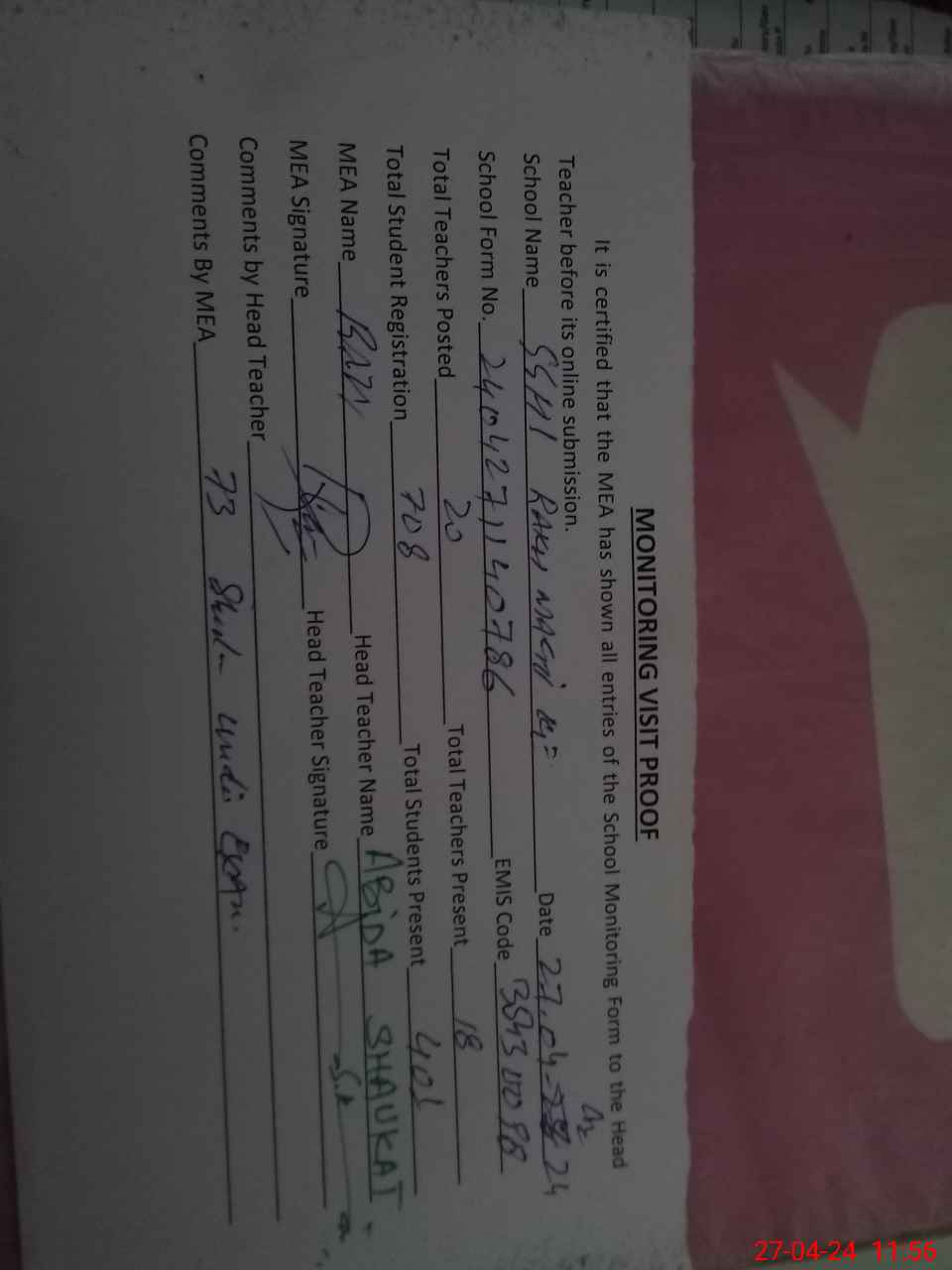 | EMIS Code: 35430098 | Name of School: GGHS RAKH MACHIKAY | |||