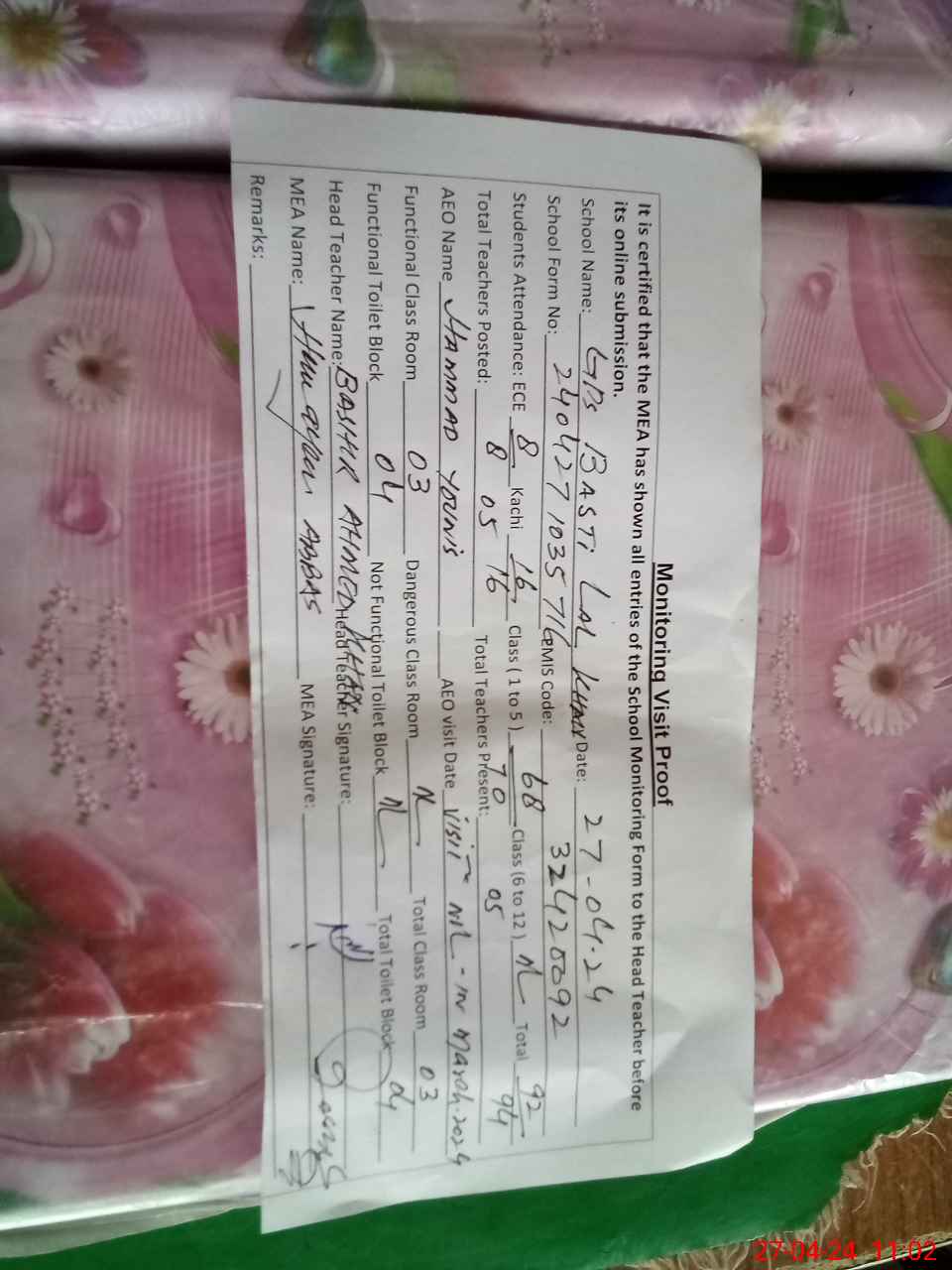 | EMIS Code: 32420092 | Name of School: GPS BASTI LAL KHAN | |||