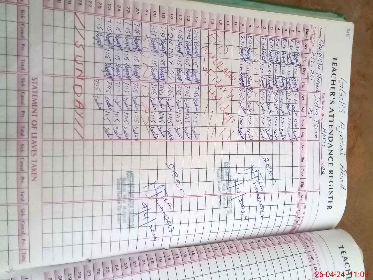 | Leave | Duty | Absent | Maternity | Medical | Ex- Pak |