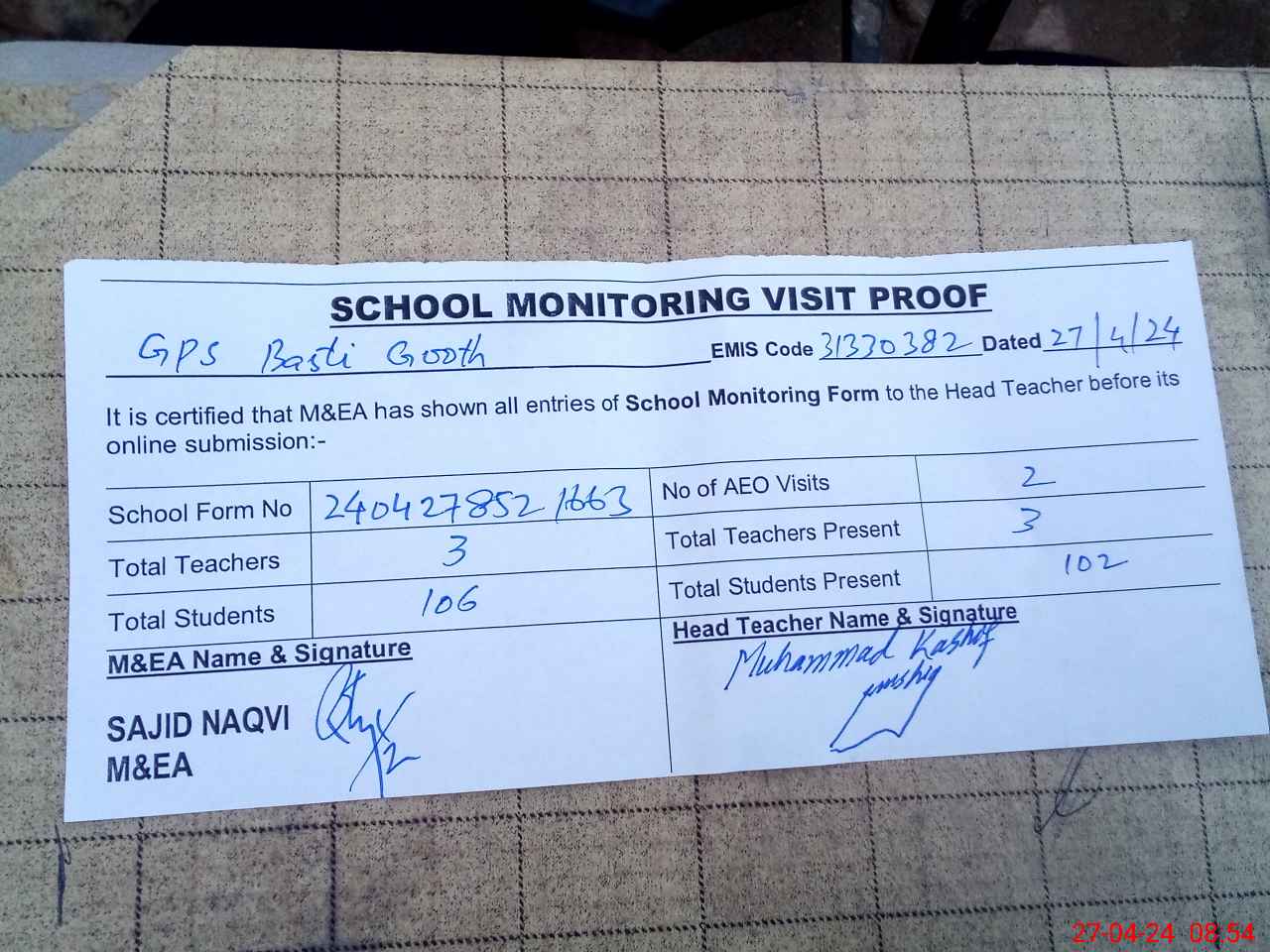 | EMIS Code: 31330382 | Name of School: GPS BASTI GOOTH | |||
