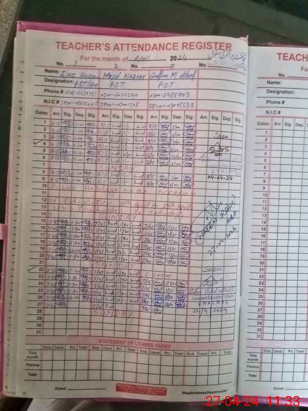 | Name: IJ**** HU**** Designation: (School Headmaster's/Headmistress's) PST Phone/Cell Number: 03**** |