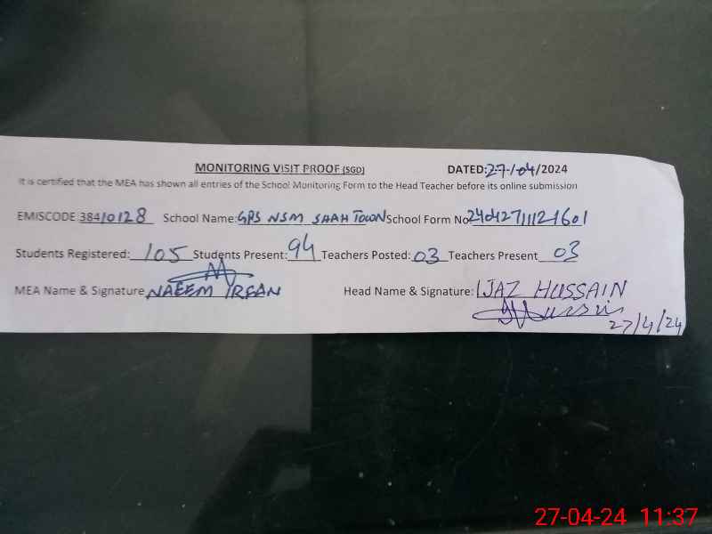 | EMIS Code: 38410128 | Name of School: GPS NOON SUGAR MILL SHAH TOWN | |||