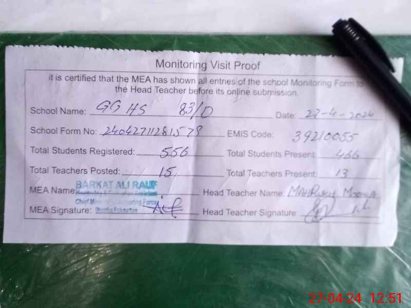 | EMIS Code: 39210055 | Name of School: GGHS 83 D | |||