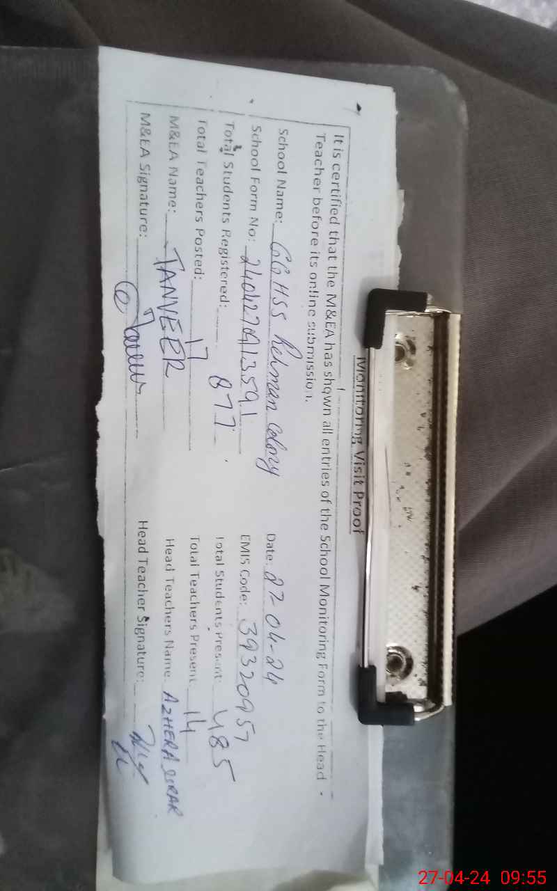 | EMIS Code: 39320957 | Name of School: GGHSS REHMAN COLONY OKARA | |||
