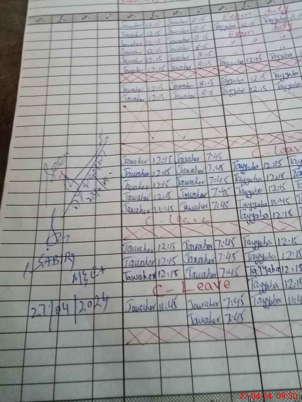 | Leave | Duty | Absent | Maternity | Medical | Ex- Pak |