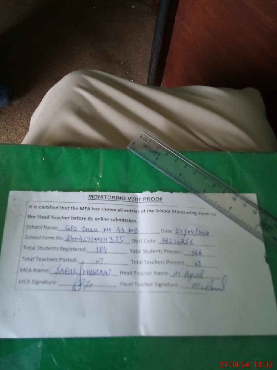 | Attendance Register | Head Teacher | MEA with School | Visit Proof |