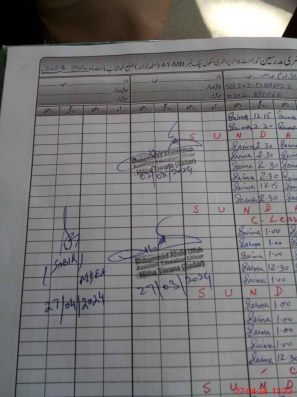 | Name: GH**** Sa**** Designation: (School Headmaster's/Headmistress's) PST/PTC/JV Phone/Cell Number: 03**** |