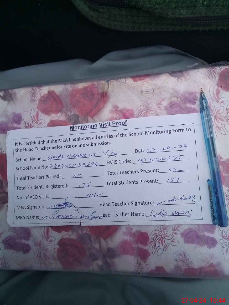 | EMIS Code: 31320575 | Name of School: GMPS CHAK 75/A | |||