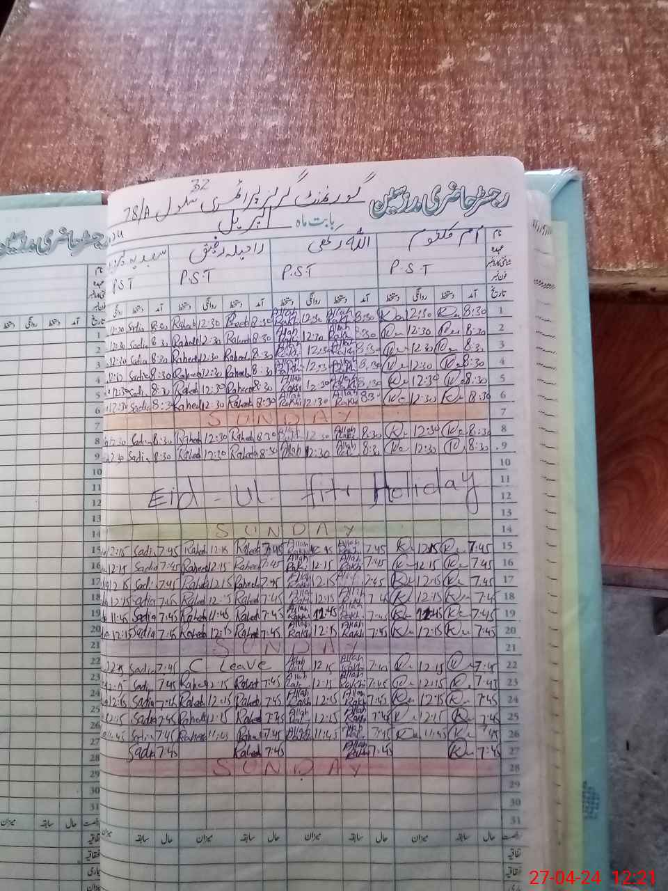 | Name: RA**** RA**** Designation: (School Headmaster's/Headmistress's) PST Phone/Cell Number: 03**** |