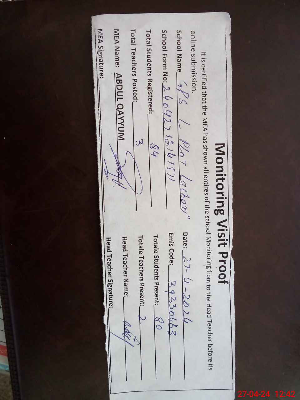 | EMIS Code: 39330463 | Name of School: GPS L-PLOT LASHARI | |||