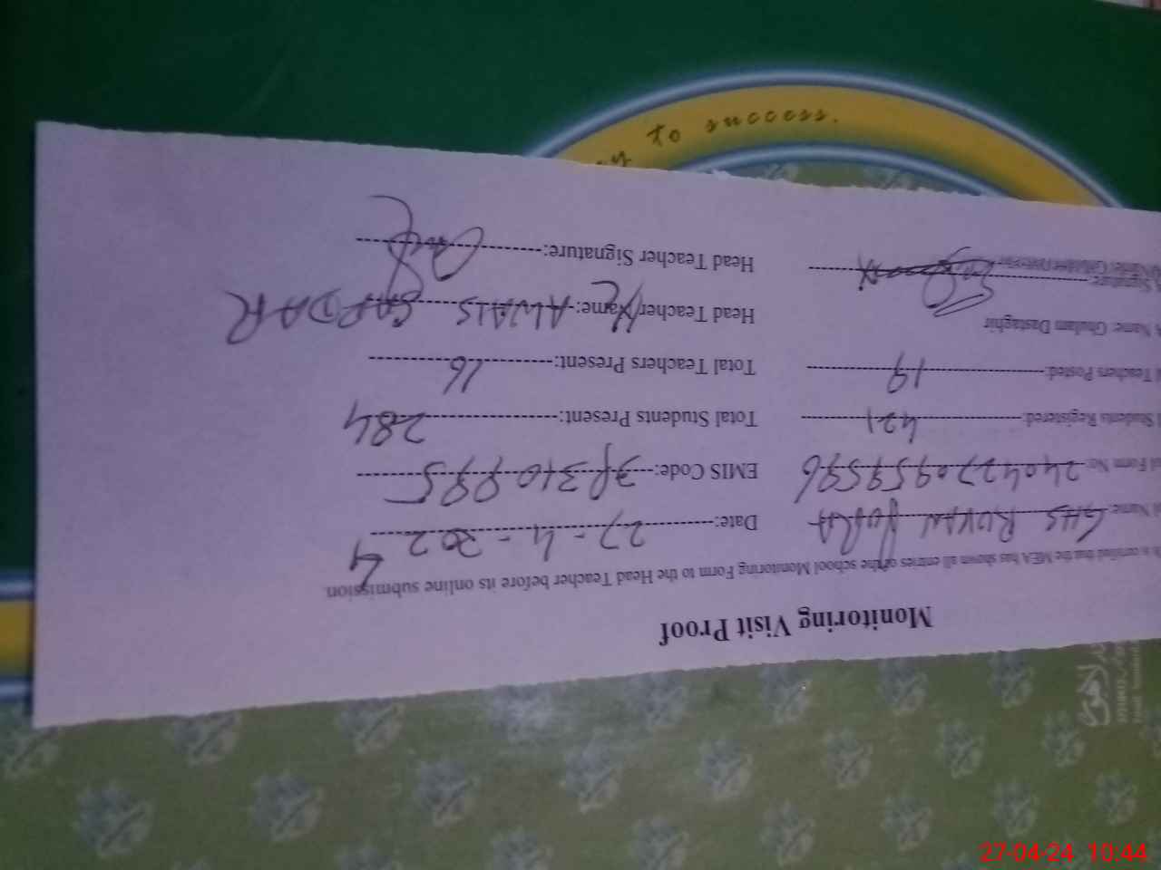 | Name: Aw**** Af**** Designation: (School Headmaster's/Headmistress's) SST Science Phone/Cell Number: 03**** |