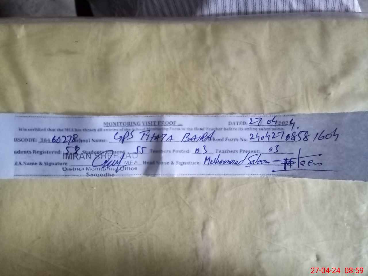 | EMIS Code: 38460278 | Name of School: GPS THATTA BERAN | |||