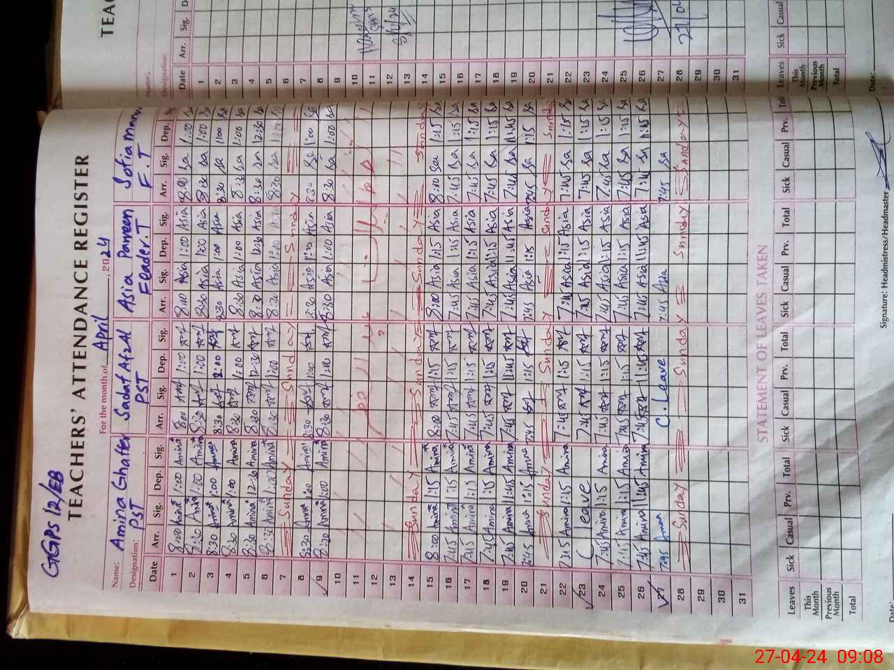 | Name: AM**** GH**** Designation: (School Headmaster's/Headmistress's) PST Phone/Cell Number: 03**** |