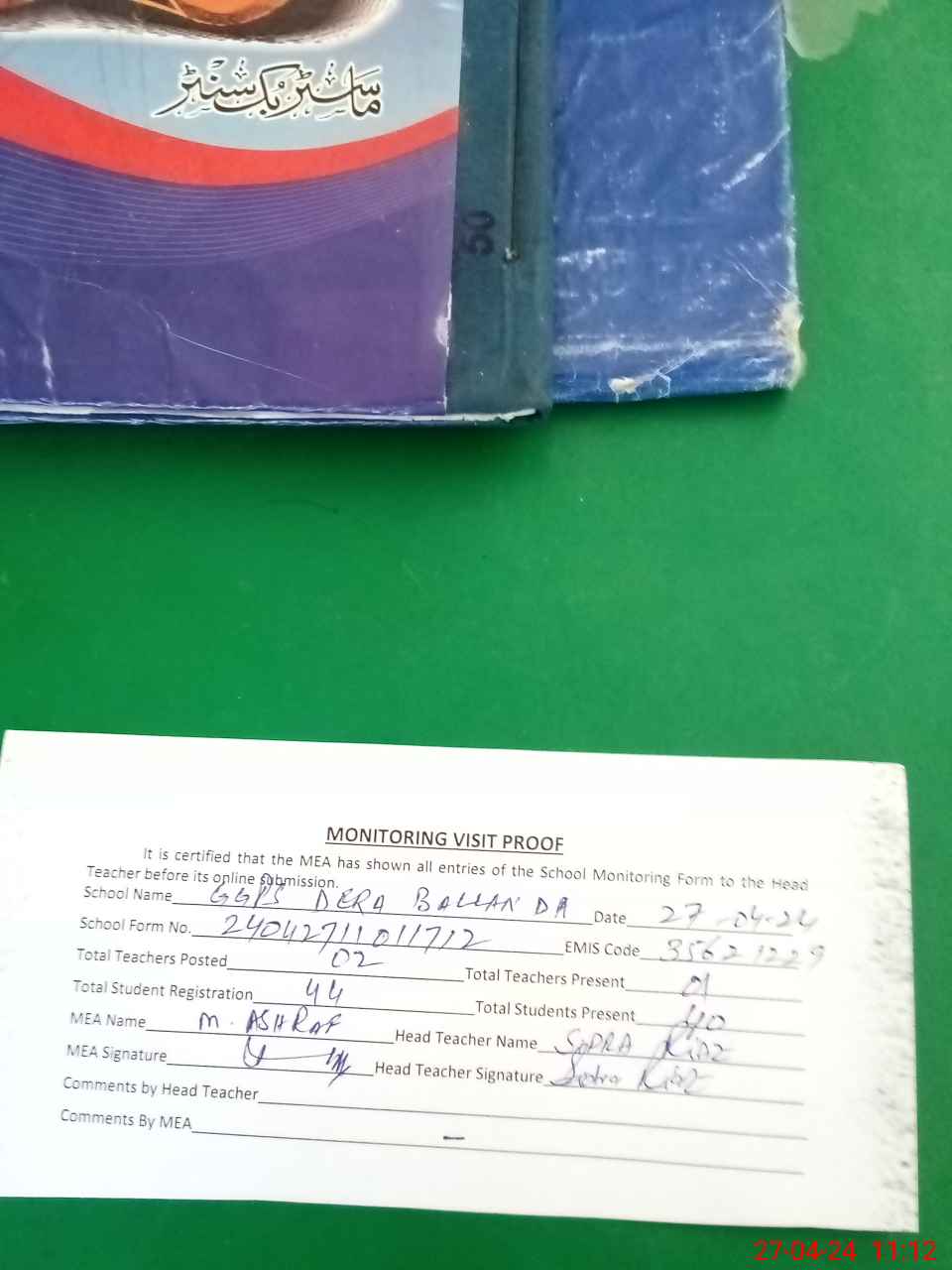 | EMIS Code: 35621229 | Name of School: GGPS DERA BALLAN DA CHAK 7 RB | |||