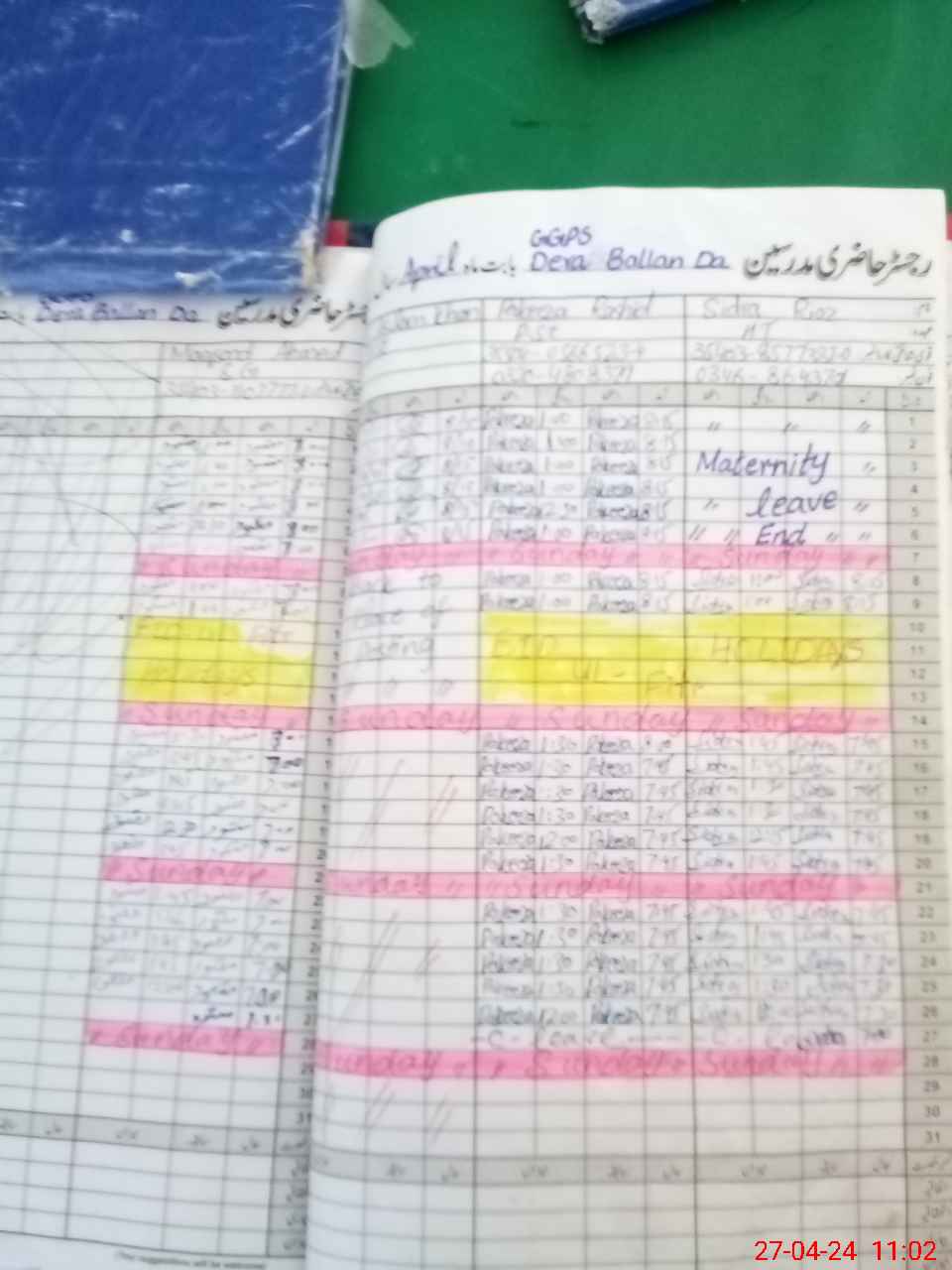 | Leave | Duty | Absent | Maternity | Medical | Ex- Pak |