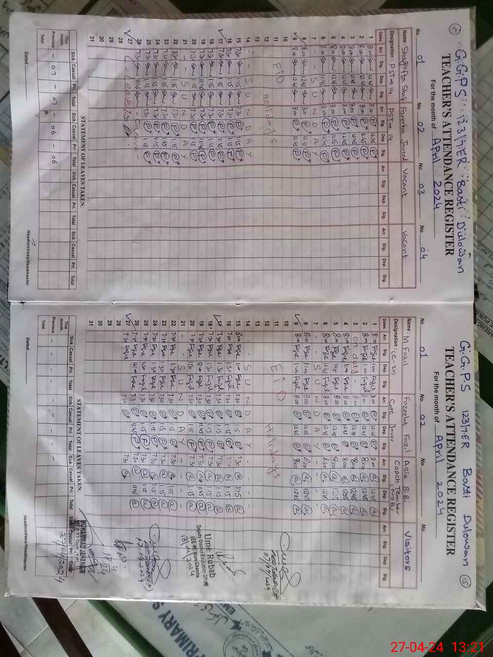 | Name: SH**** SH**** Designation: (School Headmaster's/Headmistress's) PST Phone/Cell Number: 03**** |