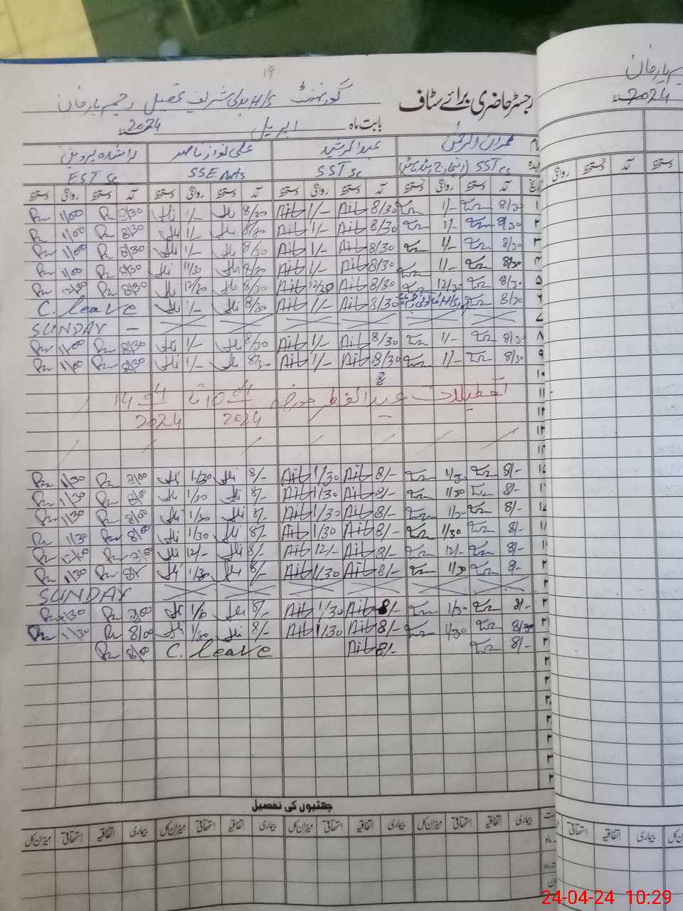 | CNIC | Full Name | Designation | R/C | Absence During Last Calender Month |