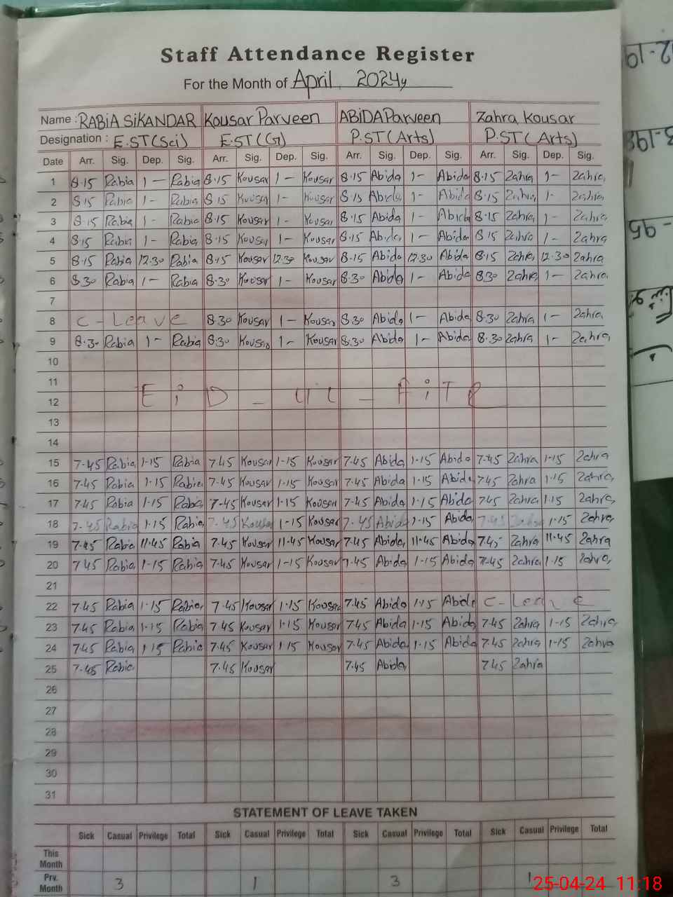 | Leave | Duty | Absent | Maternity | Medical | Ex- Pak |