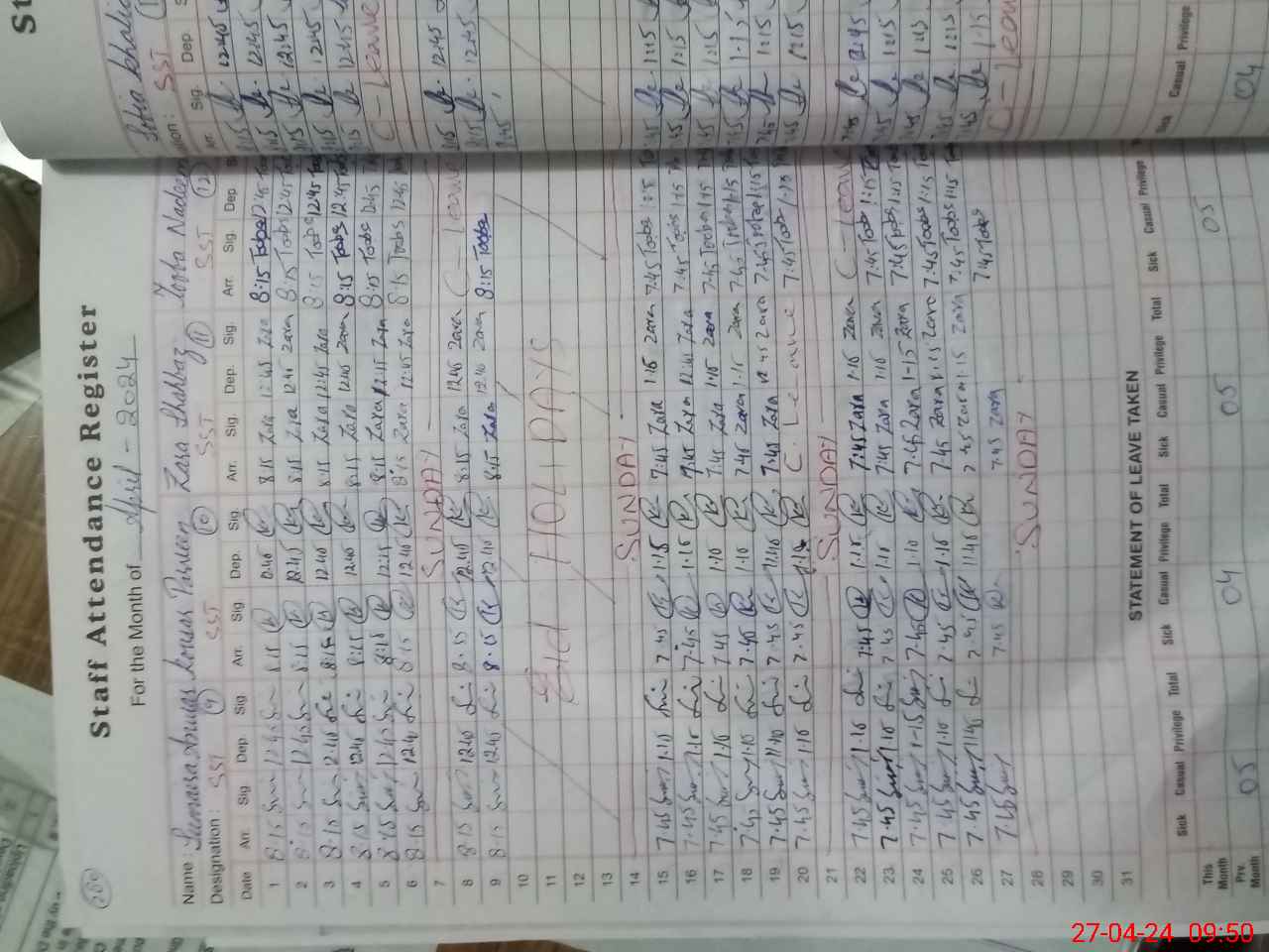 | 31**** | Sh**** Gu**** | PST | Regular | 2 | 0 | 0 | 2 | 0 | 0 | 0 | 0 | 0 | Maternity |