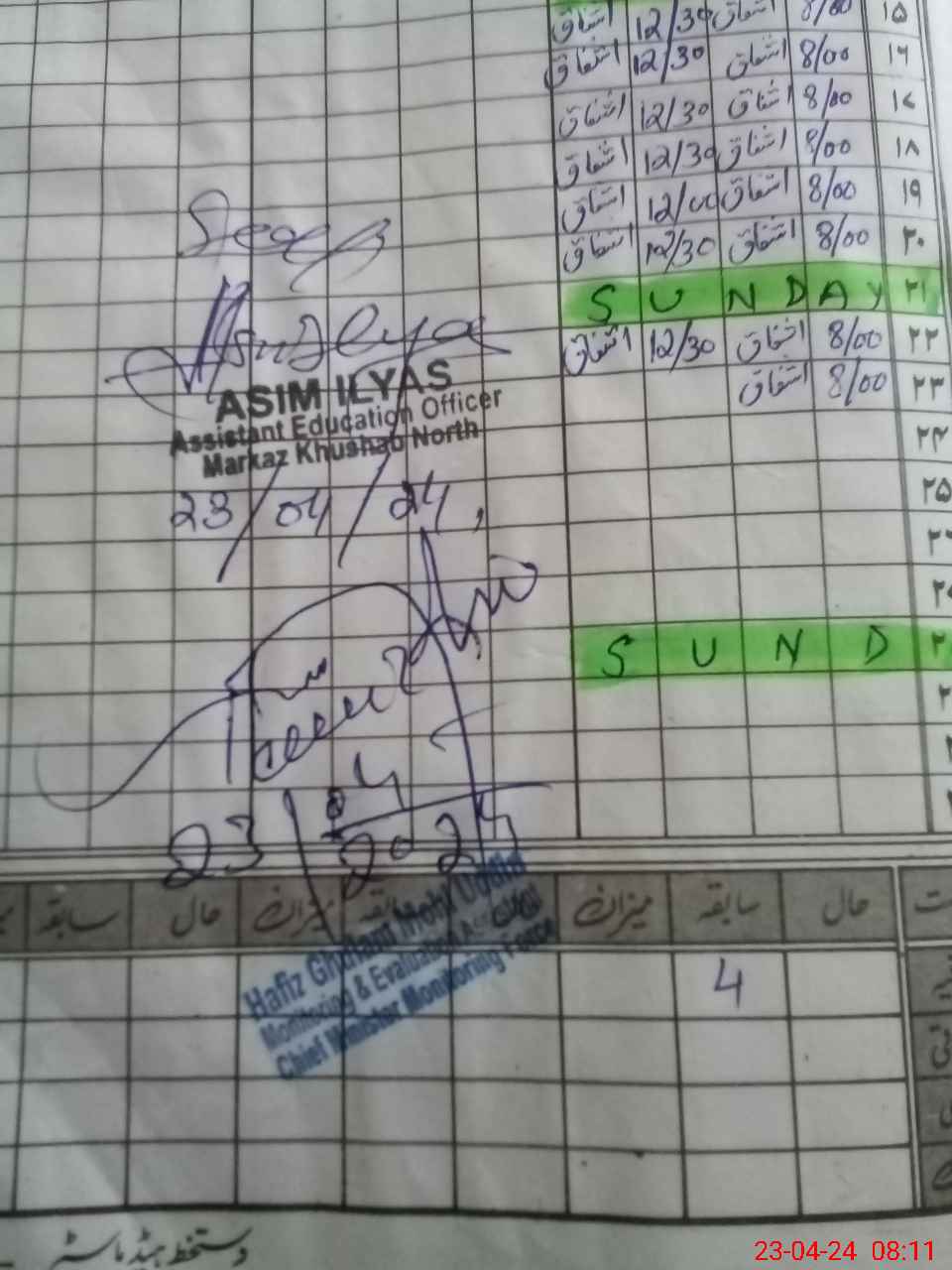 | District: KHUSHAB | Tehsil: KHUSHAB | Markaz: KHUSHAB (NORTH) (MALE) | Level: Primary | |