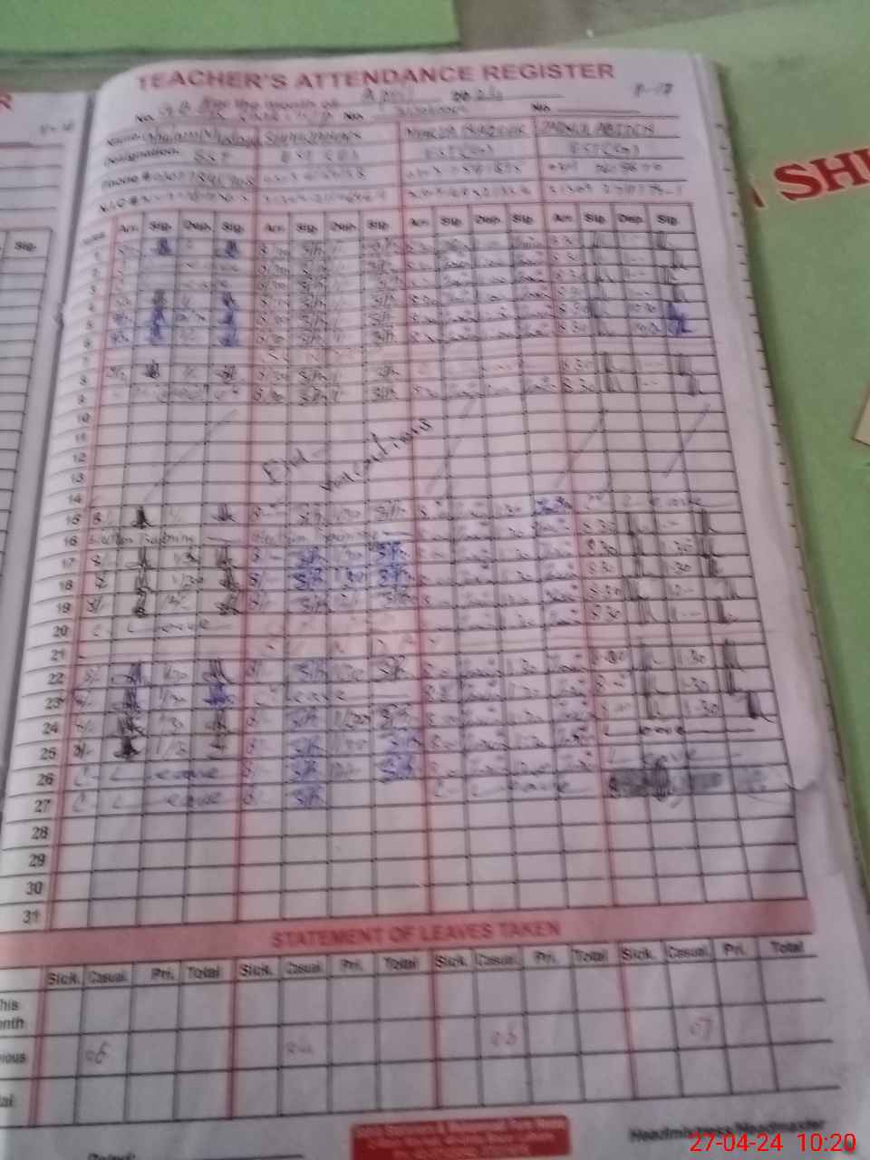 | Leave | Duty | Absent | Maternity | Medical | Ex- Pak |