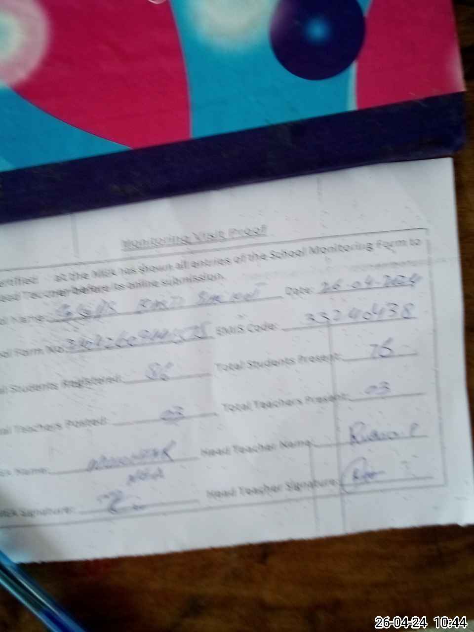 | Attendance Register | Head Teacher | MEA with School | Visit Proof |