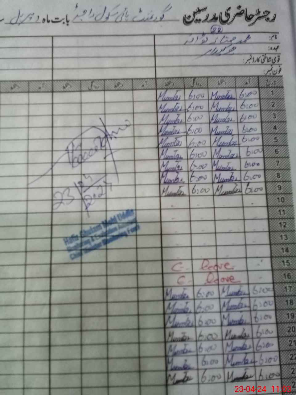 | 38**** | Sa**** Iq**** | Regular | 0 | 0 | 0 | 0 | 0 | 0 | 0 | 0 | 0 | Exam Duty | |