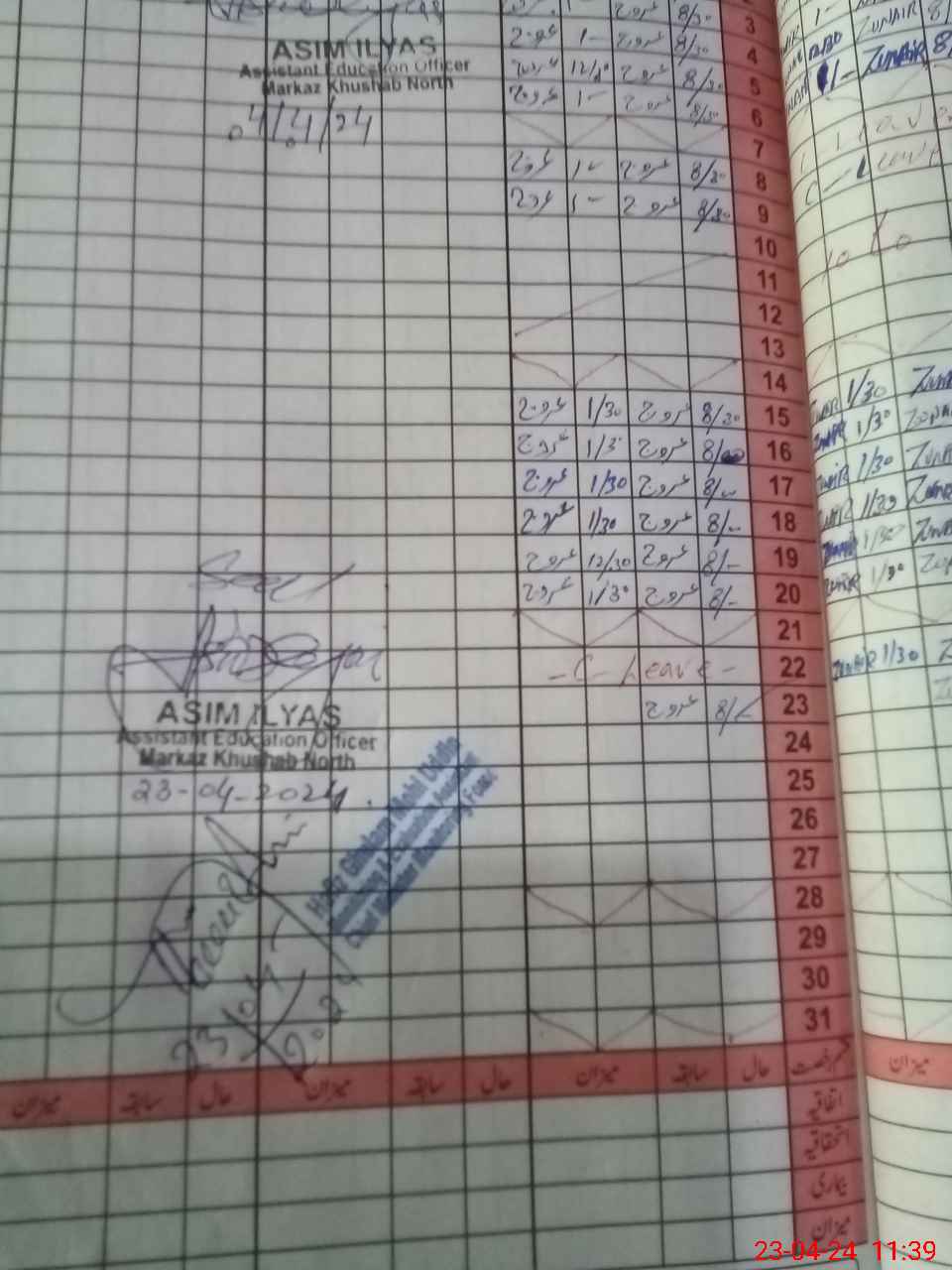| CNIC | Full Name | Designation | R/C | Absence During Last Calender Month |