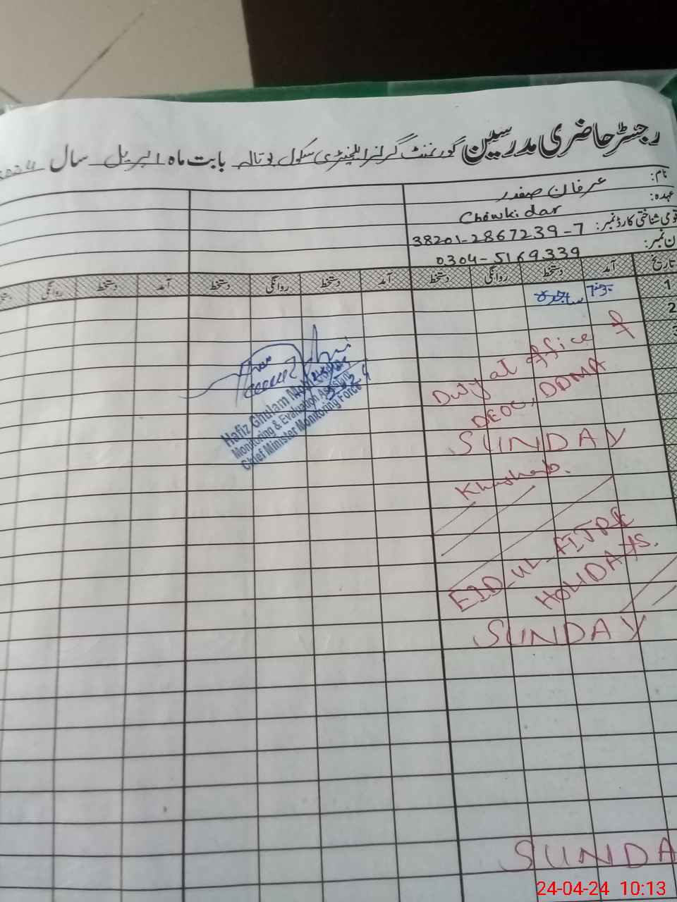 | Name: Ta**** Ba**** Designation: (School Headmaster's/Headmistress's) Sse sci Phone/Cell Number: 03**** |
