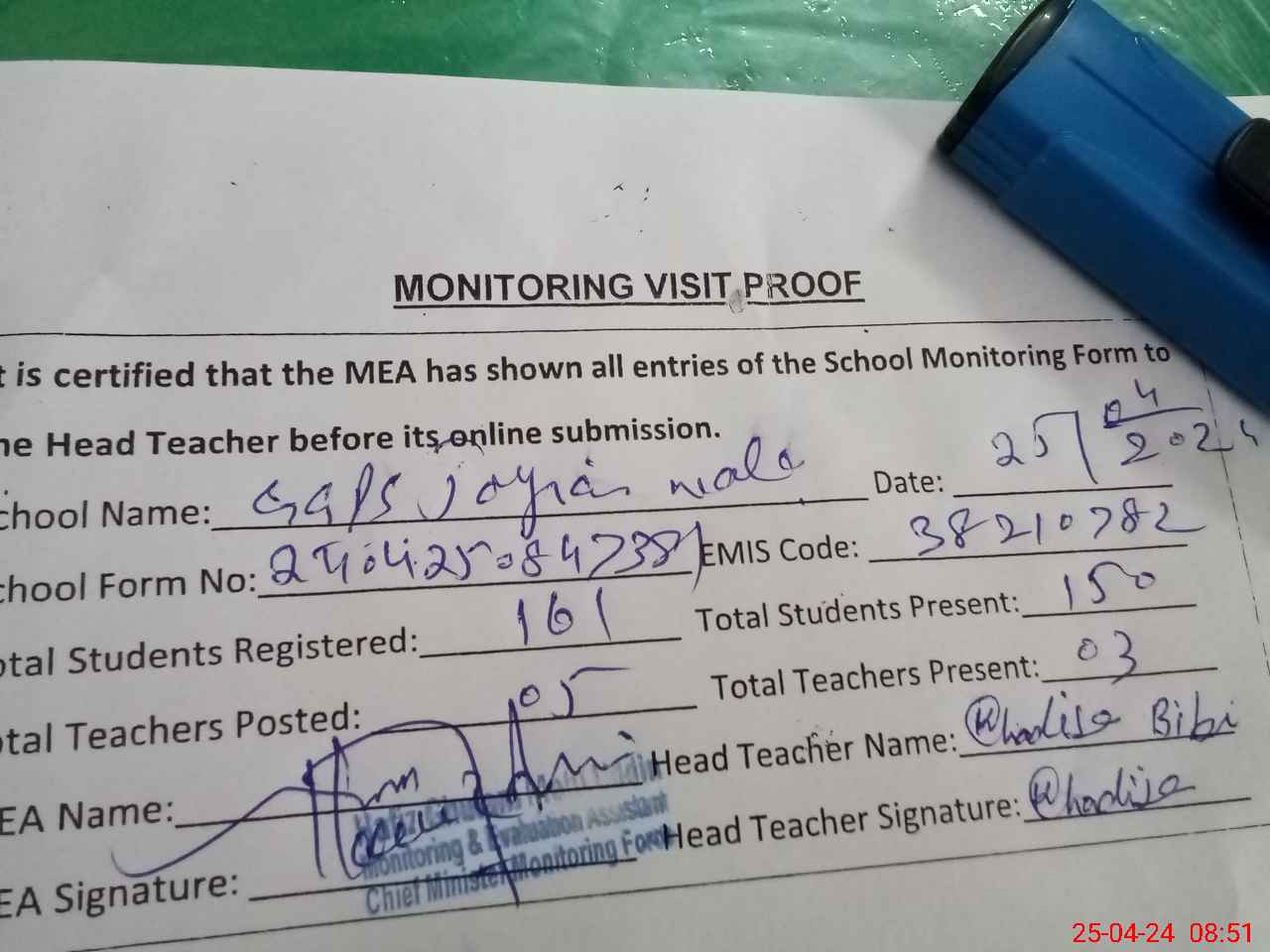 | EMIS Code: 38210782 | Name of School: GGPS JOIYAN WALA | |||
