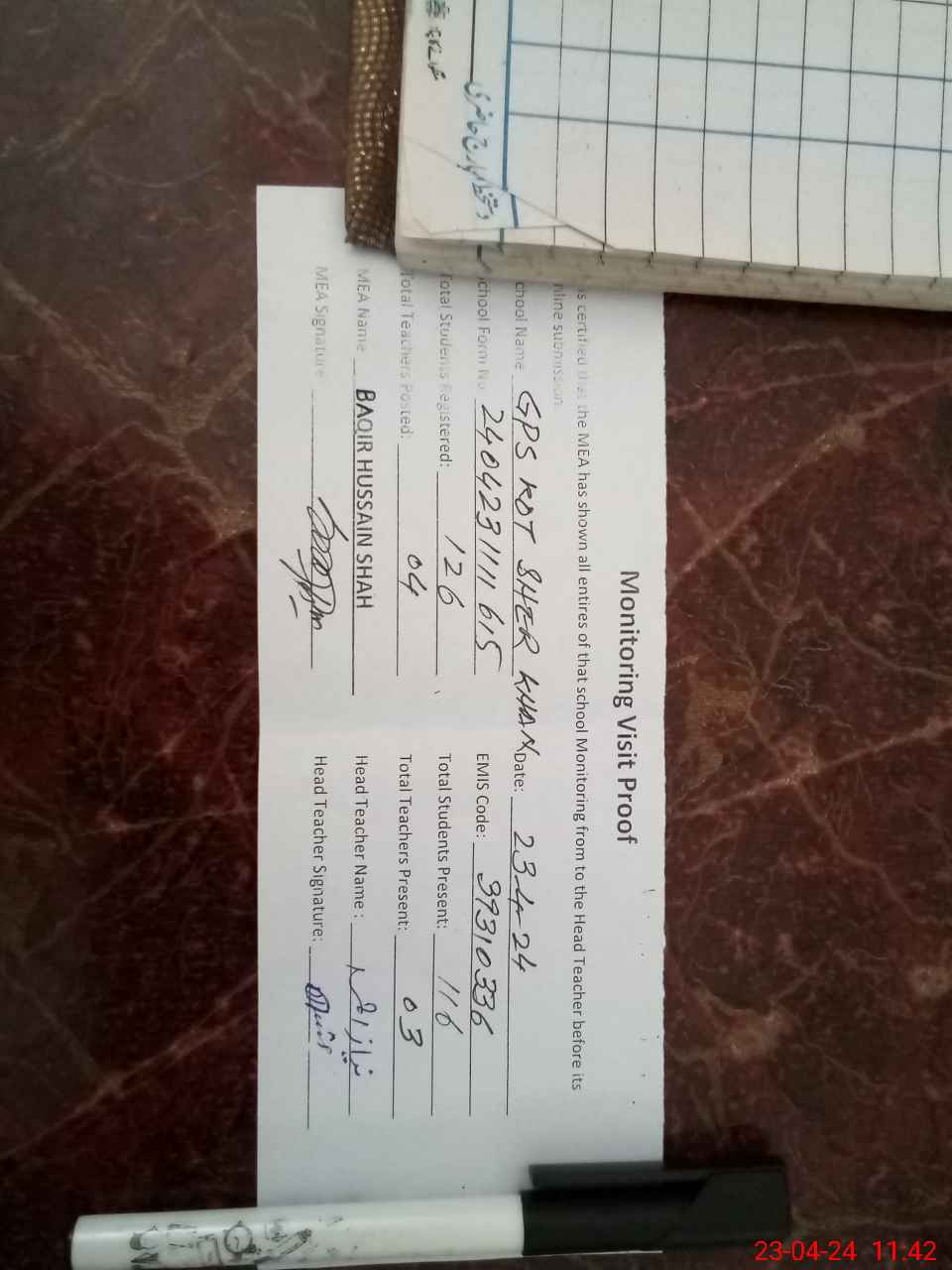 | EMIS Code: 39310336 | Name of School: GPS KOT SHER KHAN | |||