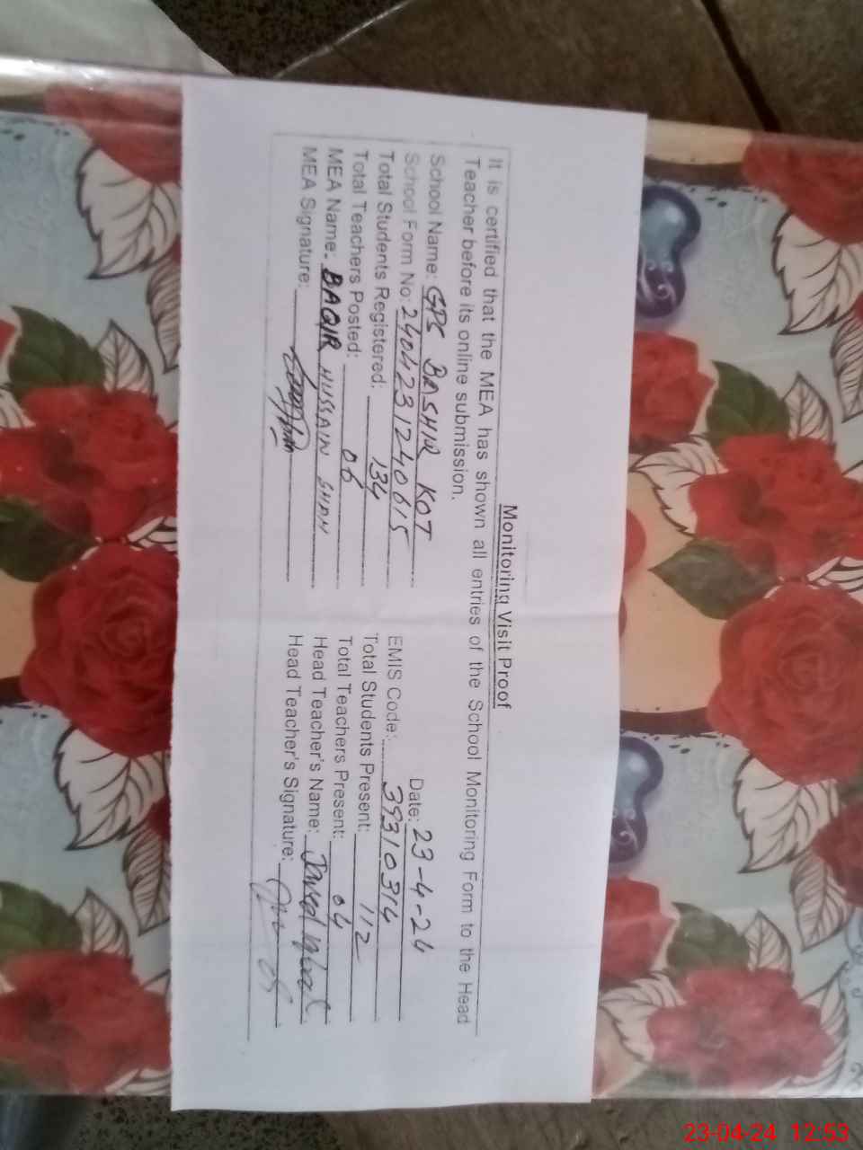 | EMIS Code: 39310314 | Name of School: GPS BASHIR KOT | |||