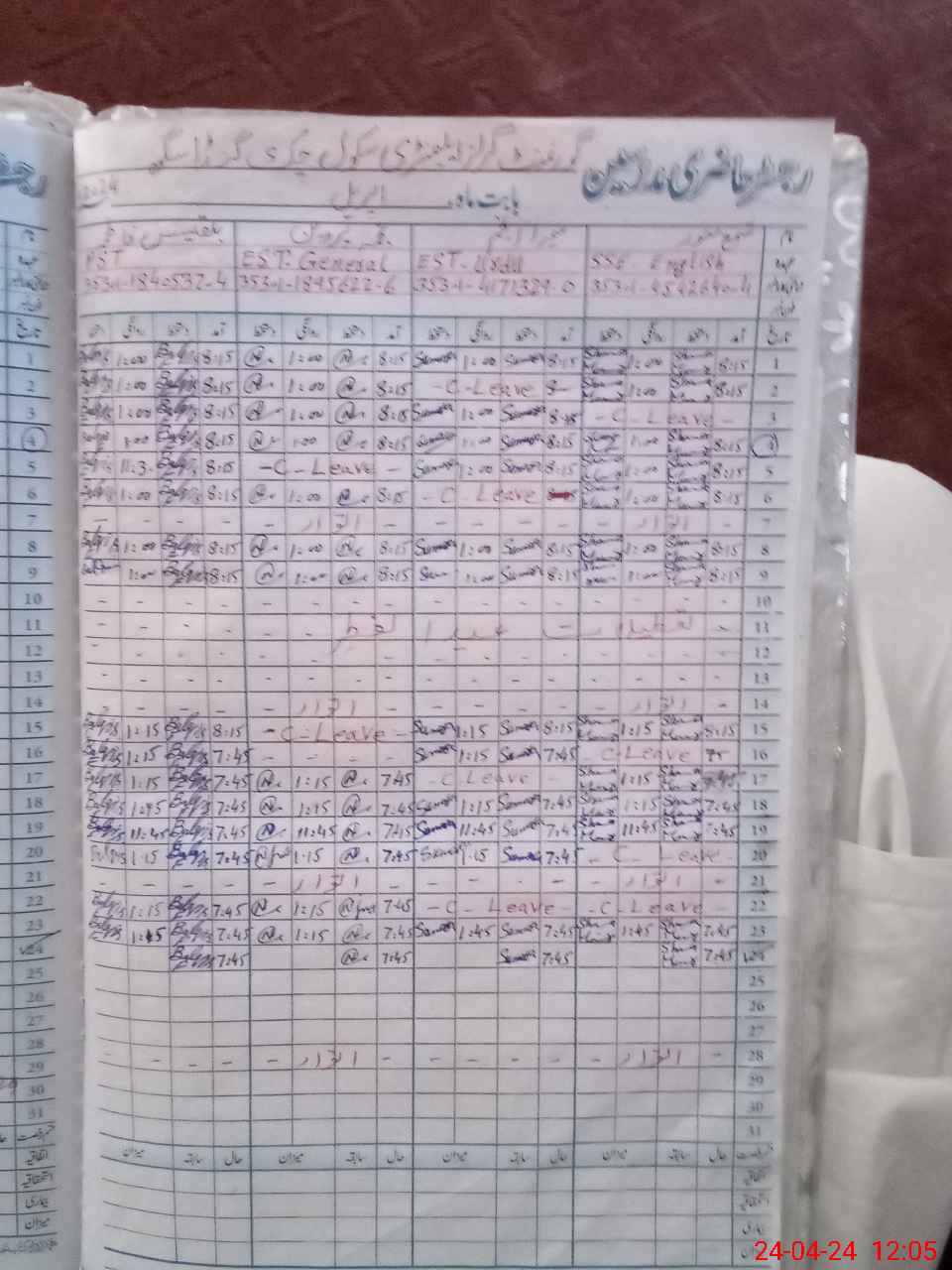 | CNIC | Full Name | Designation | R/C | Absence During Last Calender Month |