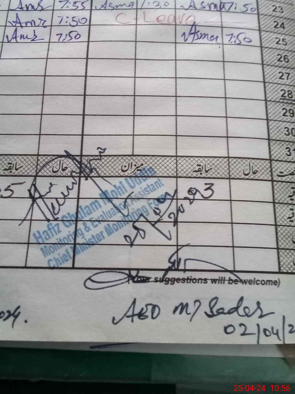 | Name: Am**** Az**** Designation: (School Headmaster's/Headmistress's) PST Phone/Cell Number: 03**** |